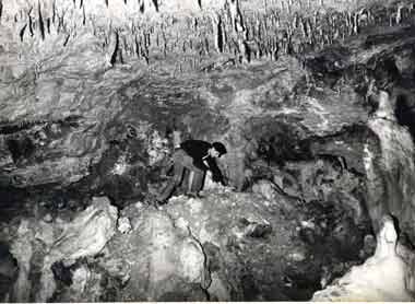 BIENVENIDOS Descubierta a comienzos del siglo XX, cuando buscando agua para un cebadero de cerdos, se cavó un pozo y apareció una cueva (durante años se la conoció entre los naturales del pueblo como la Cueva del Cebadero) en la cual los primeros lugareños que se aventuraron a explorarla, lo pasaron mal para salir, debido a la cantidad de galerías intercomunicadas a distintos niveles, lo que hace de ella un auténtico laberinto natural. Quizás los dos primeros "espeleologos" del lugar fueron el "tío Mateo" y el "tío Cayoles", que entraron a explorarla con teas y velas, cuando ya perdidos y sin teas para alumbrarse se dieron por muertos escribieron en una pared con el carbón de las mismas "hasta aquí llegaron Mateo y Cayoles", pero una expedición formada por los mozos del pueblo utilizando sogas anudadas para no perderse y cencerros, para hacerse oír, dieron con ellos y salvaron sus vidas. Un suceso semejante ocurrió sobre los años 50 siendo, a miembro de la familia "Serna" (familia ganadera del sector taurino que tenia su vacada en el término de Pradenilla), los cuales también fueron encontrados por el mismo procedimiento. Relatando a su salida que habían encontrado la inscripción que menciono en el párrafo anterior. Las galerías de la cueva tiene una longitud de varios kilómetros, estando adaptadas para la visita al público la parte mas vistosa de Grandes galerías por su belleza o interés arqueológico en una extensión cercana a los 400 metros. Durante años se realizó